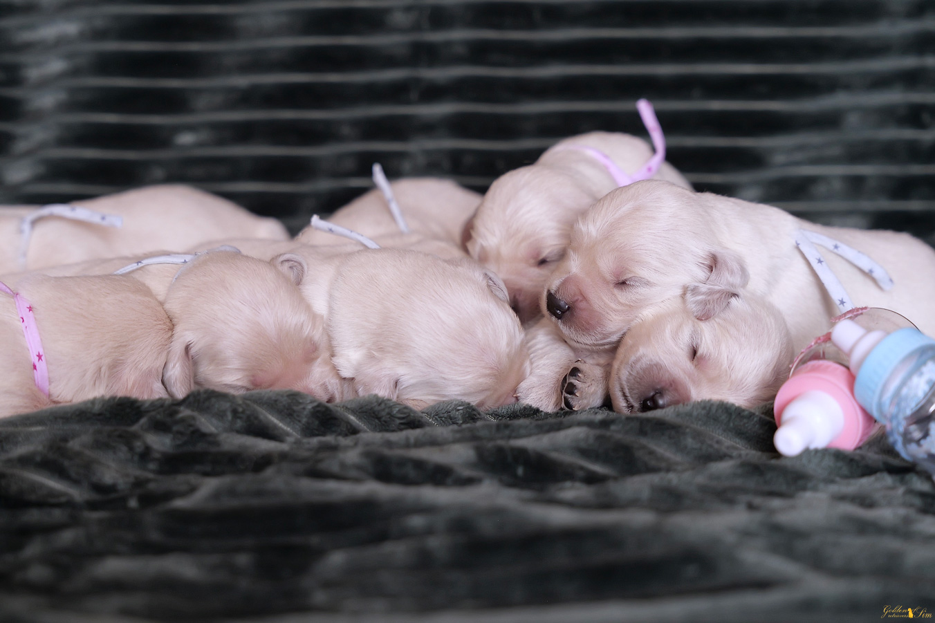 Bienvenue dans notre galerie dédiée à nos chiots Golden Retrievers ! Ici, vous découvrirez en images nos chiots, pleins de douceur, de joie et de malice. Chaque photo capture un moment de tendresse, de jeu, de curiosité ou de découverte – Une petite fenêtre sur leur quotidien avant de rejoindre leur future famille. Prenez le temps de parcourir leurs portraits….vous risquez de craquer !